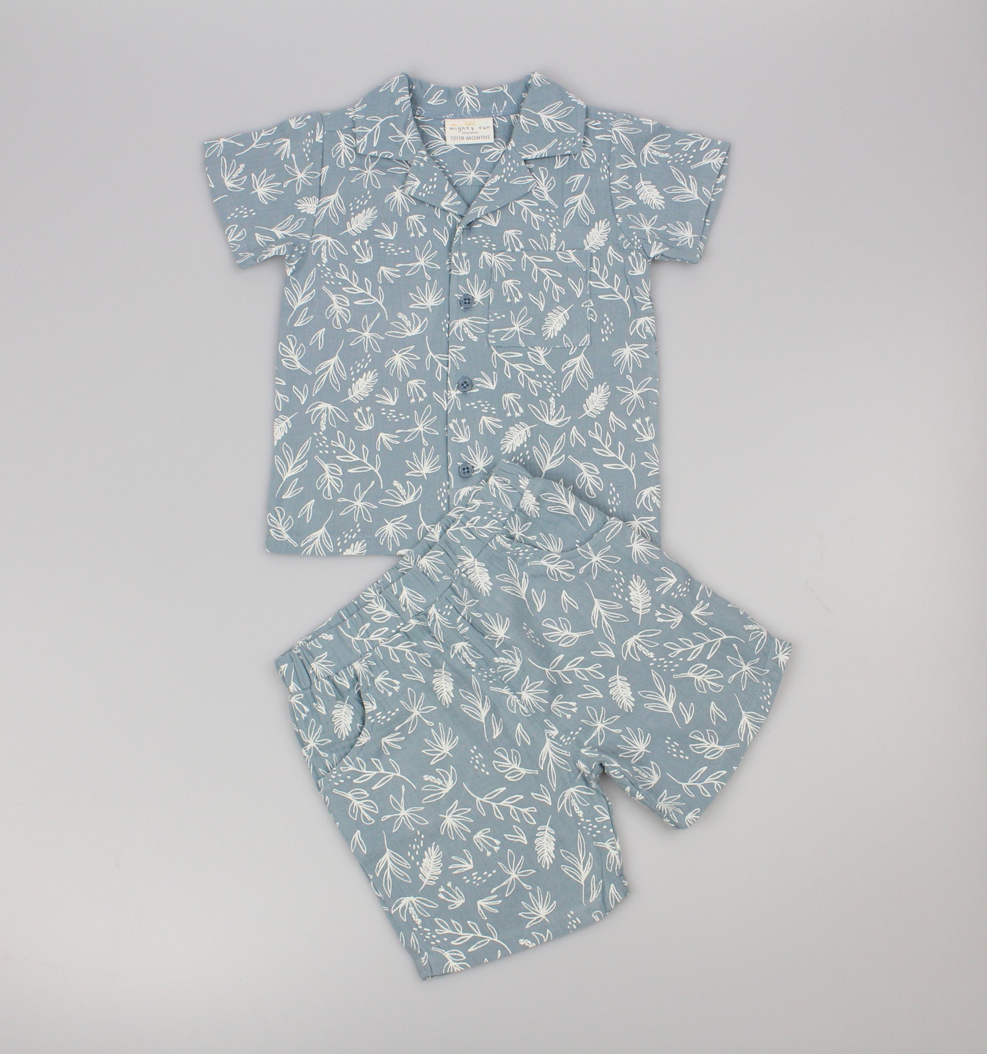 Baby Boys 2pc Shorts Set - Blue Grey Patterned (1-2Years) (PK6) M34315