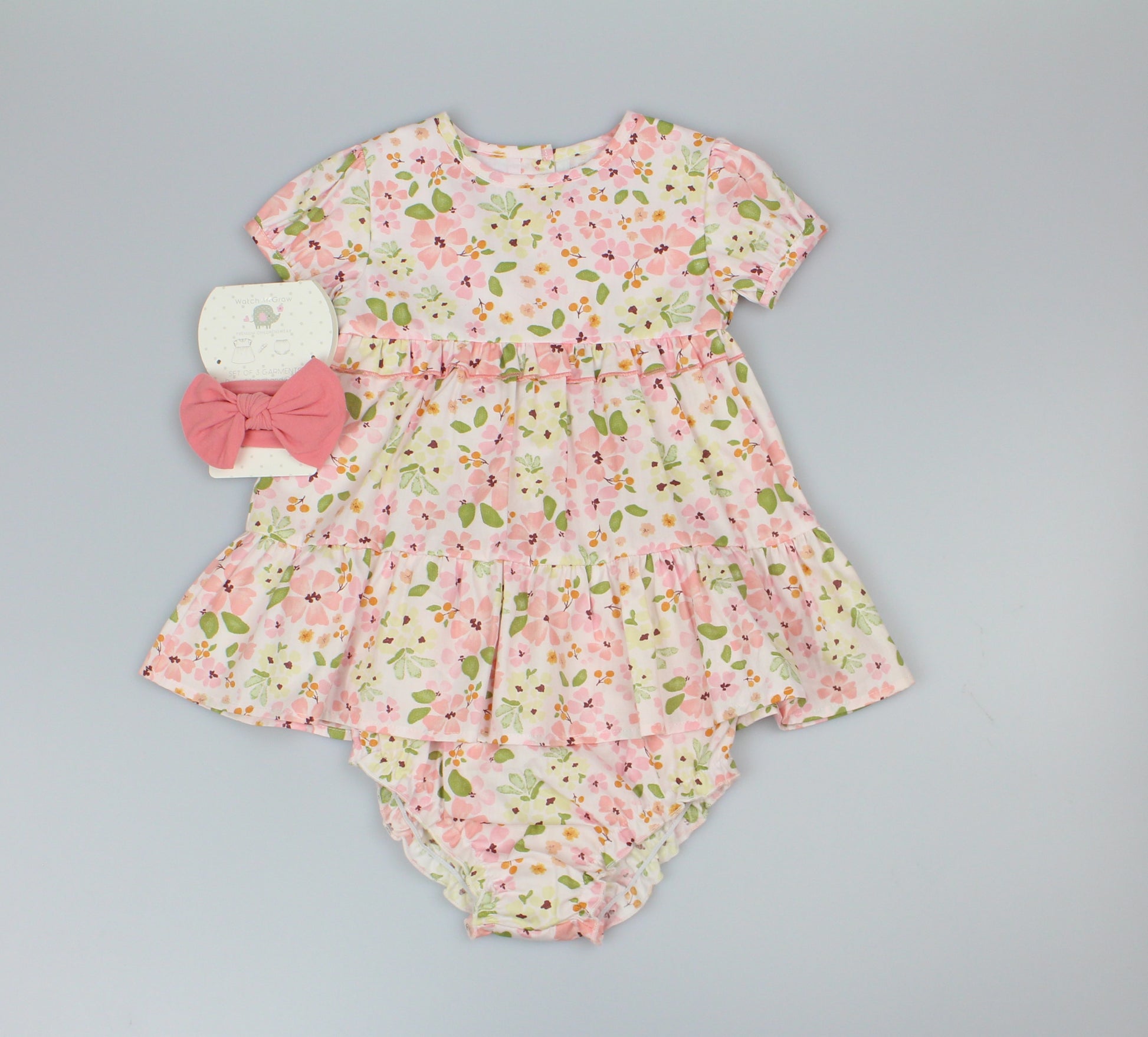 Baby Girls 3pc Dress, Pant & Headband Set - Floral Frill (1-2yrs) (PK6) - M34310