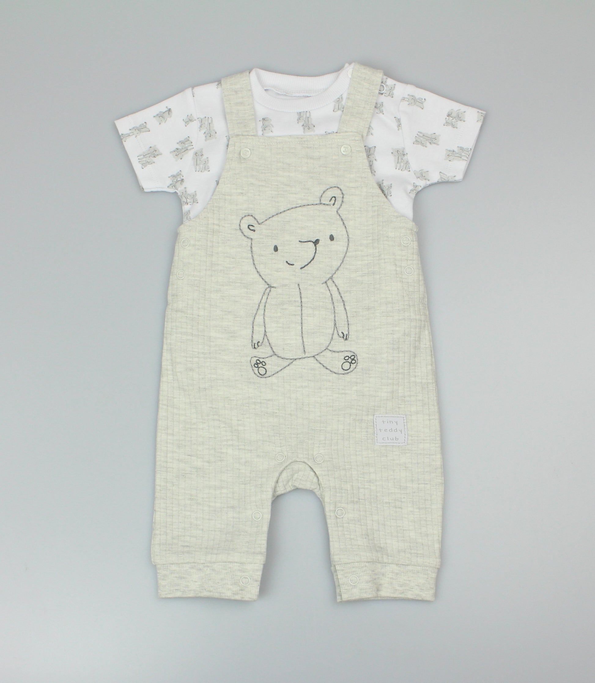 2pc Waffle Dungaree & T-Shirt Set - Bear/Grey (PK6) - M14260