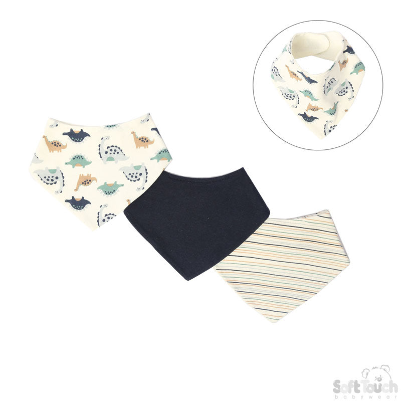3 Pack Bandana Bib Set Dinosaurs-2CC101-B