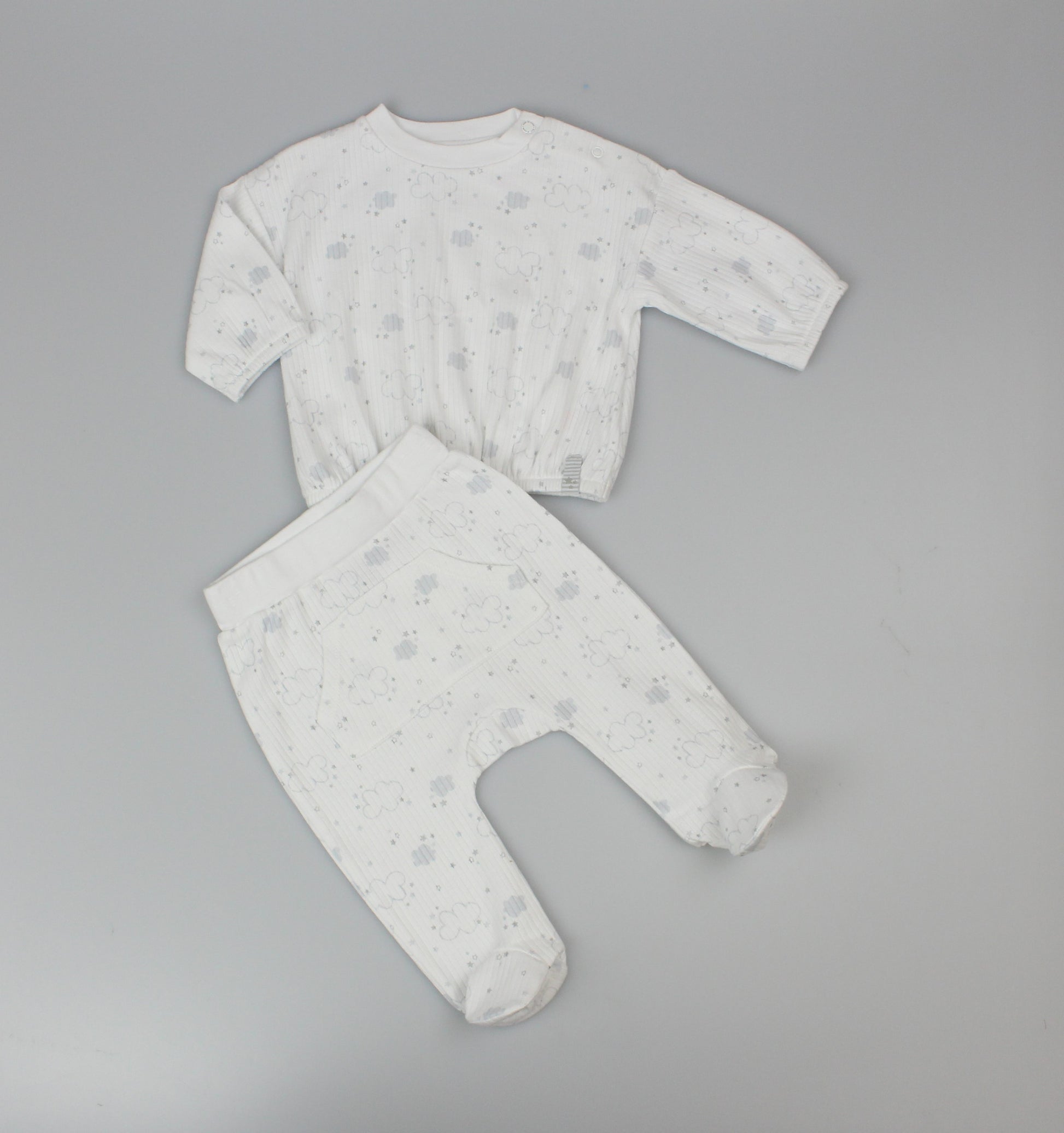 Baby 2pc Cotton Rib Top/Jogger Set - White (0-6m) (PK6) J13811