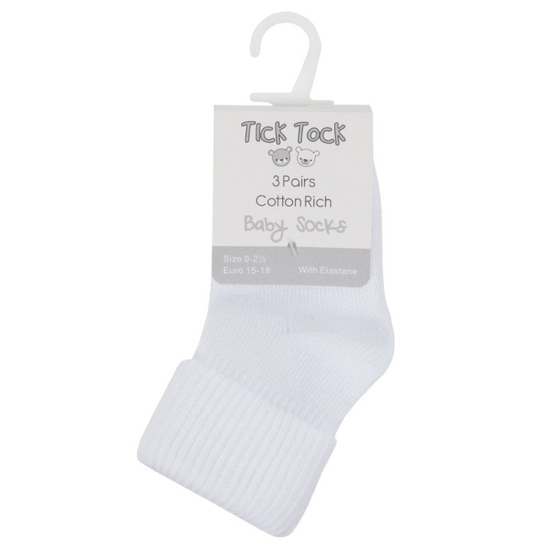 Baby 3 Pack Plain White Turn Over Socks (0-0, 0-2.5, 3-5.5) 44B267