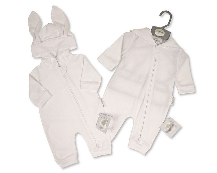 Baby All-In-One with Bunny Ears - Long - White (NB-9m) (PK6) BIS-2120-6335w