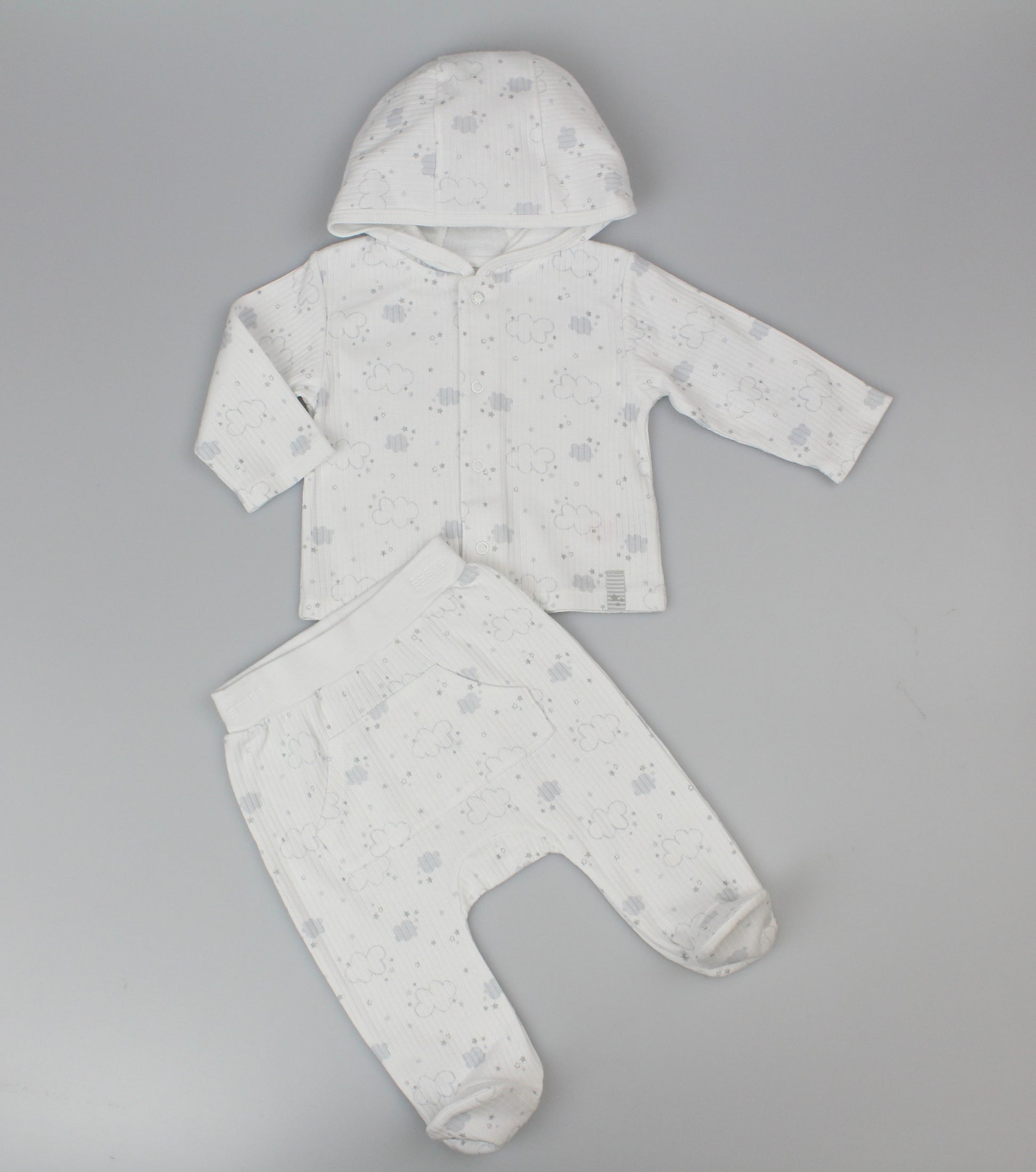 Baby 2pc Cotton Rib Jacket/Jogger Set - White (0-6m) (PK6) J13809