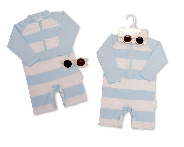 Baby Boys Zip Up Swimsuit with Sunglasses - Sky (12-24M) (PK6) BIS-2120-6232