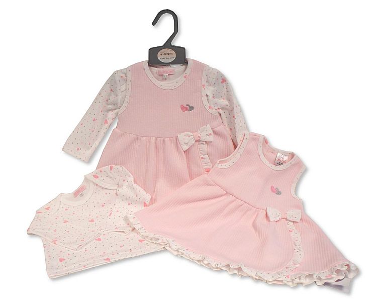 Baby Girls 2 pcs Dress Set with Bow - Sweet Heart (NB-6 Months) (PK6) Bis-2020-2518