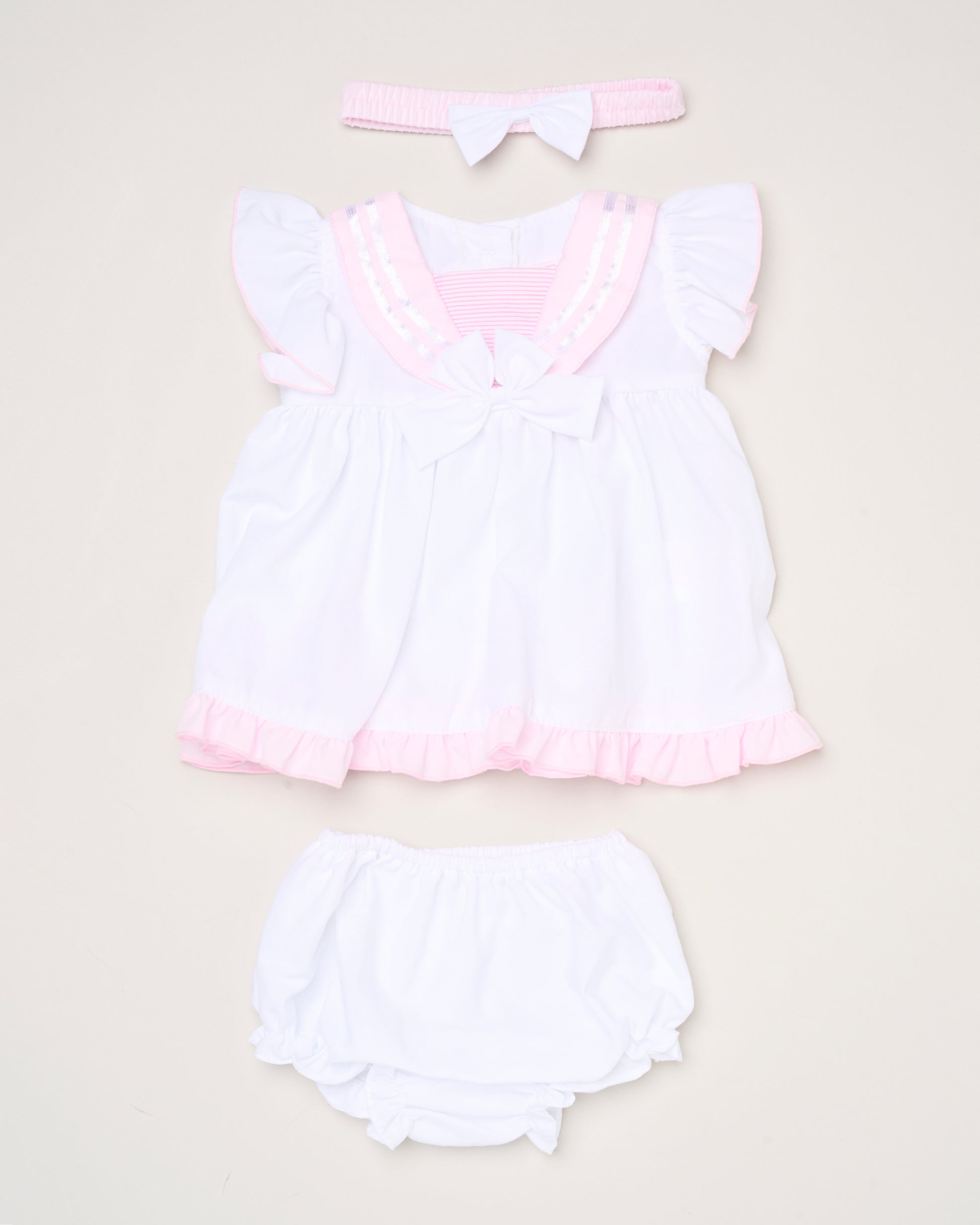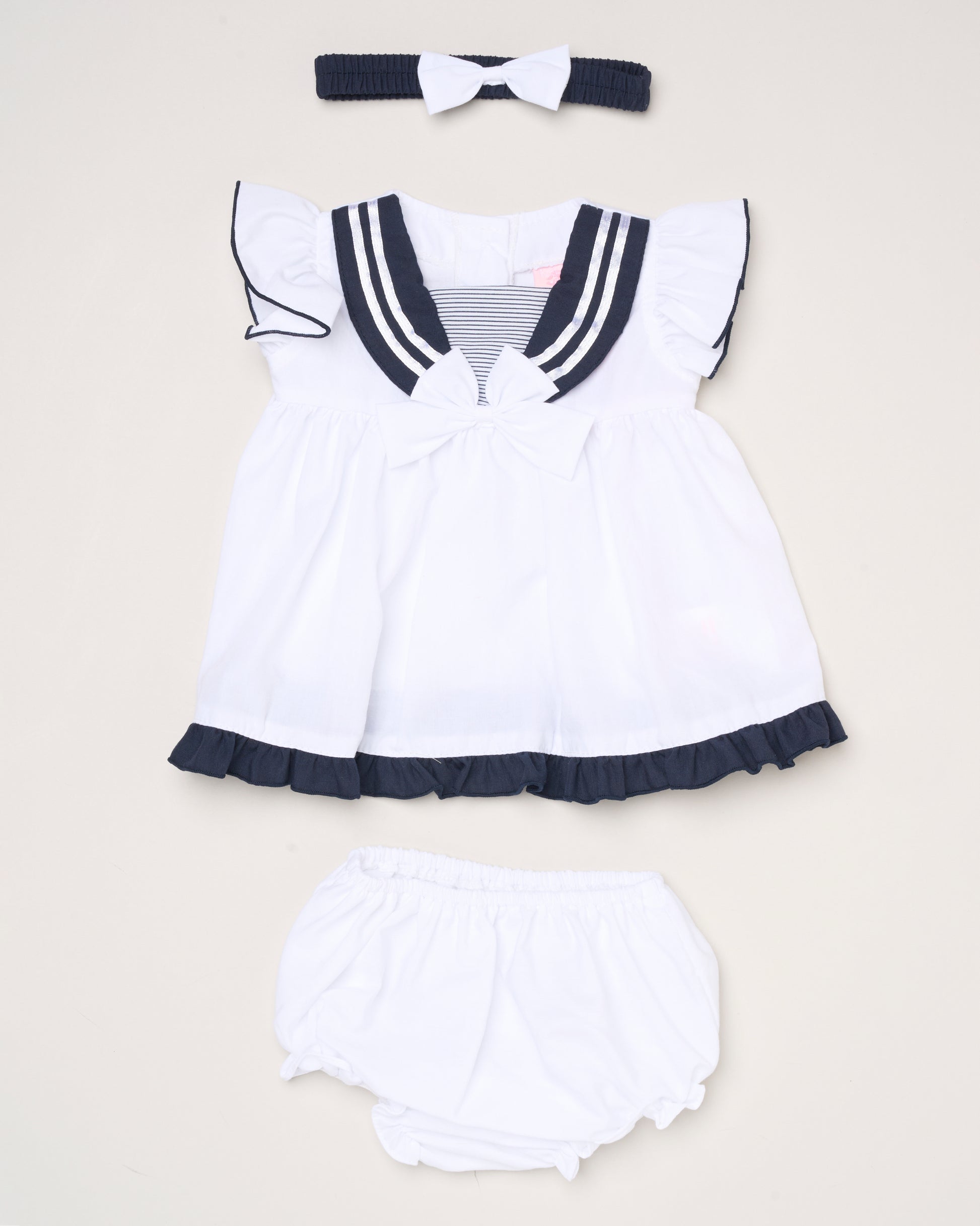 Baby Girls Dress, Pant & Headband Set - White/Navy/Pink (0-9m) (PK6) H12816NB