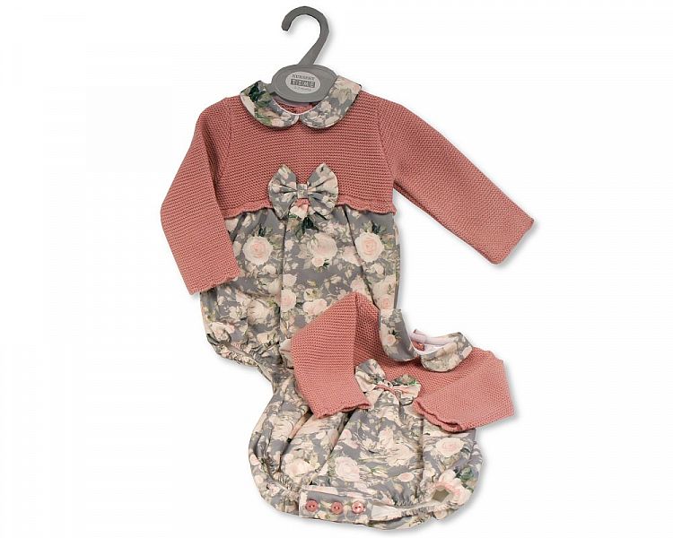 Baby Girls Knitted/ Woven Romper with Bow (NB-9 Months) (PK6) Bw-10-1177