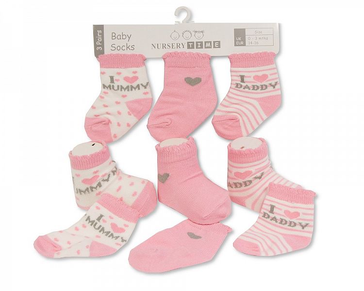 Baby Girls Socks 3-Pack - I Love Mummy/Daddy (0-6 Months) (pk6) BW-61-2214
