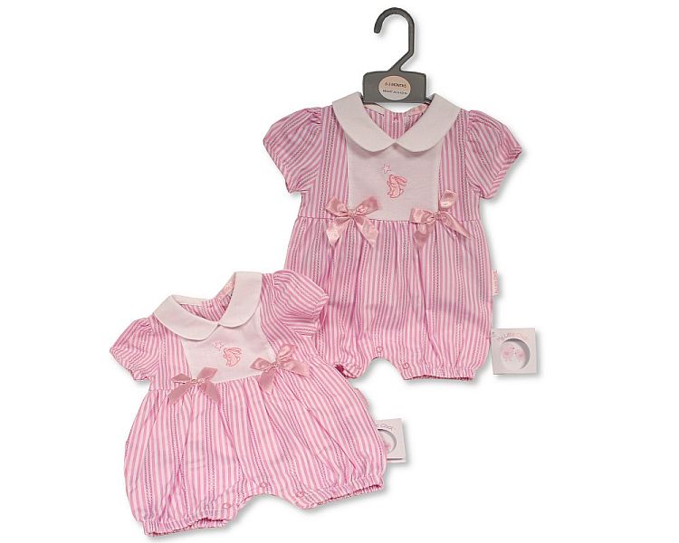 Baby Girls Striped Romper with Bows - Bunny (NB-6m) (PK6) BIS-2120-6285