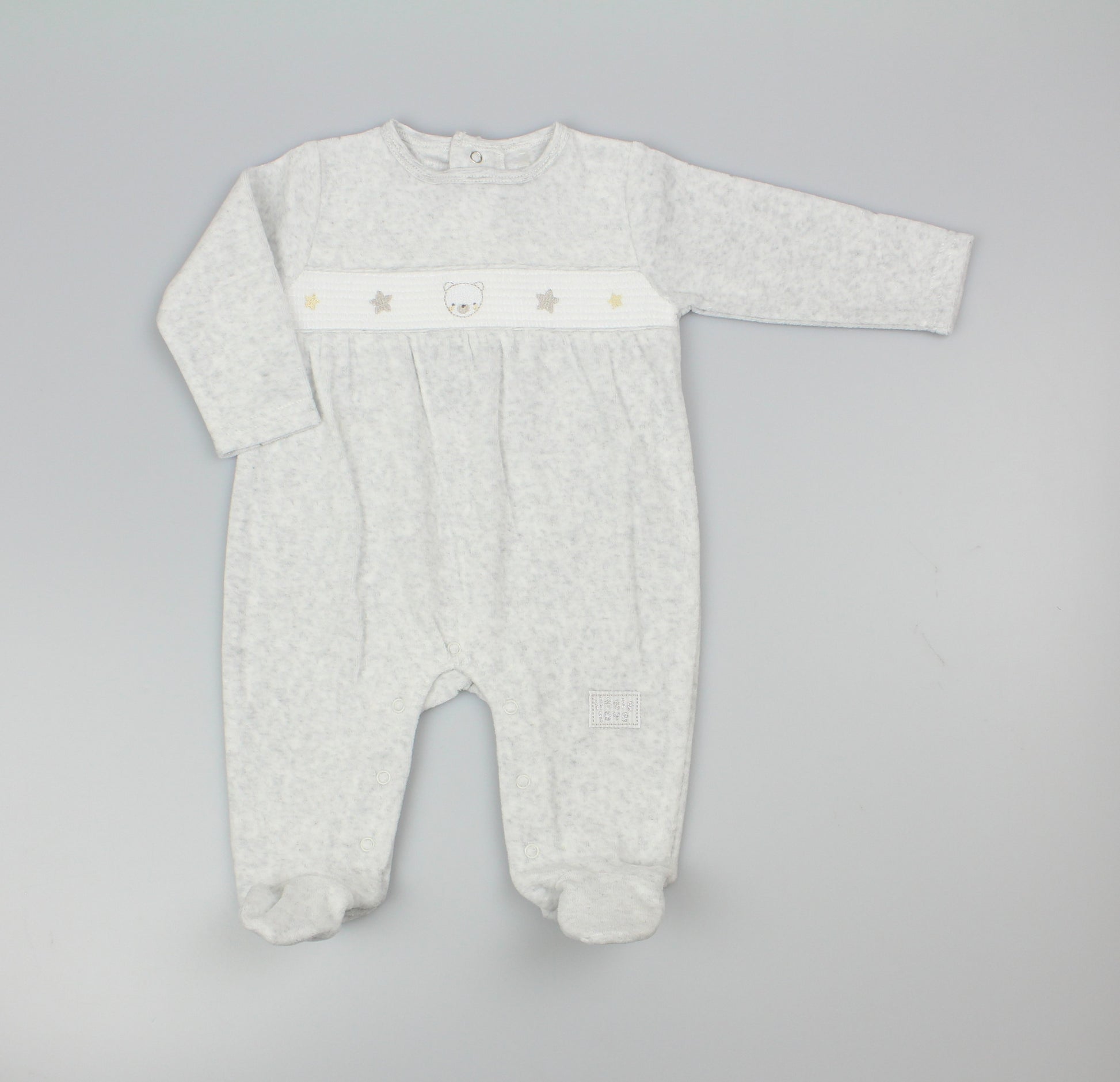 Baby Velour All in One - Grey Smocked (0-9M) (PK6) M15973