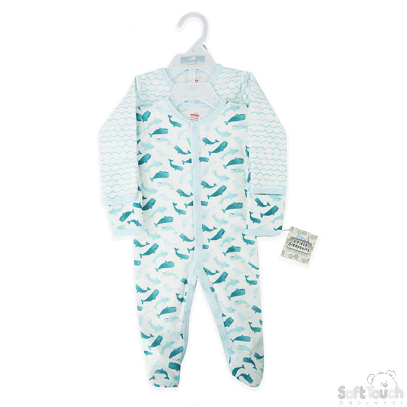 2 Pack Sleepsuit Whale (0-3 Months)-4CC204-SS
