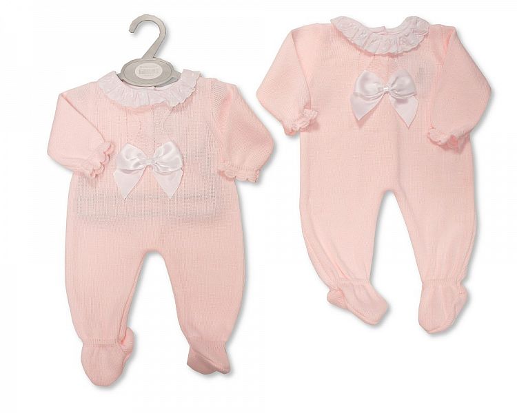 Baby Girls Knitted Long Romper with Lace and Bow