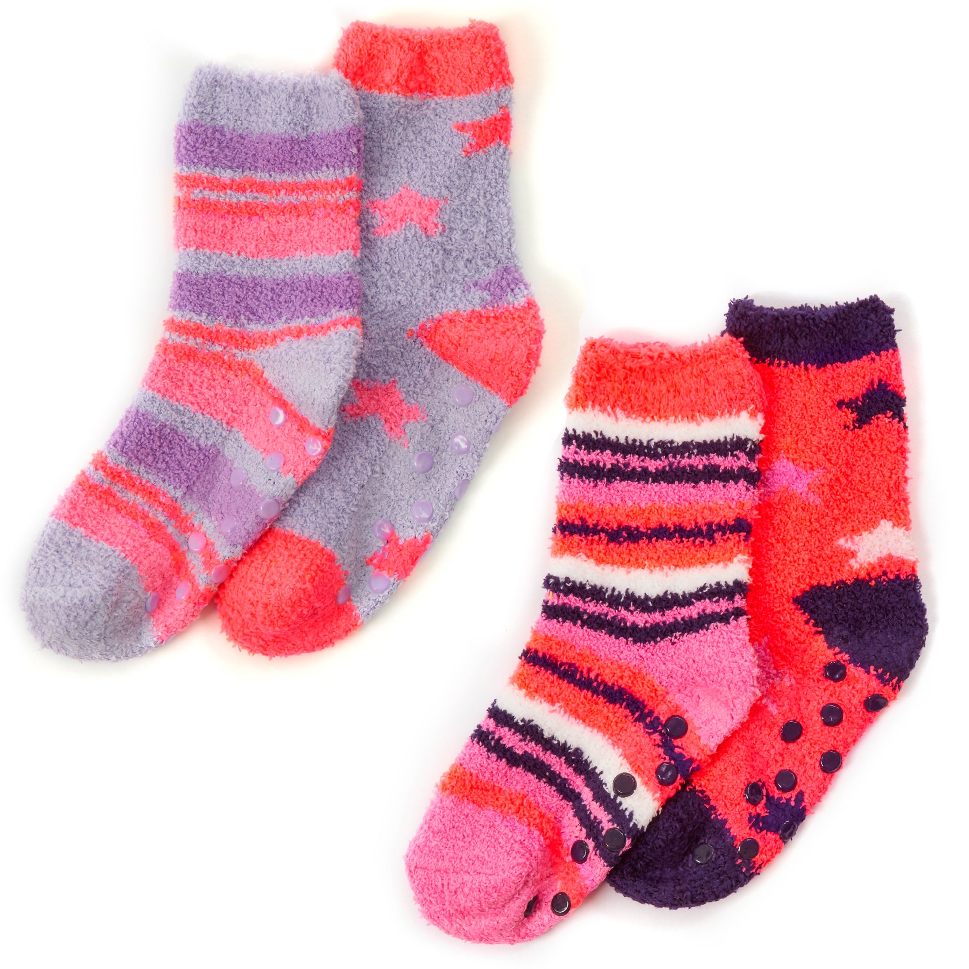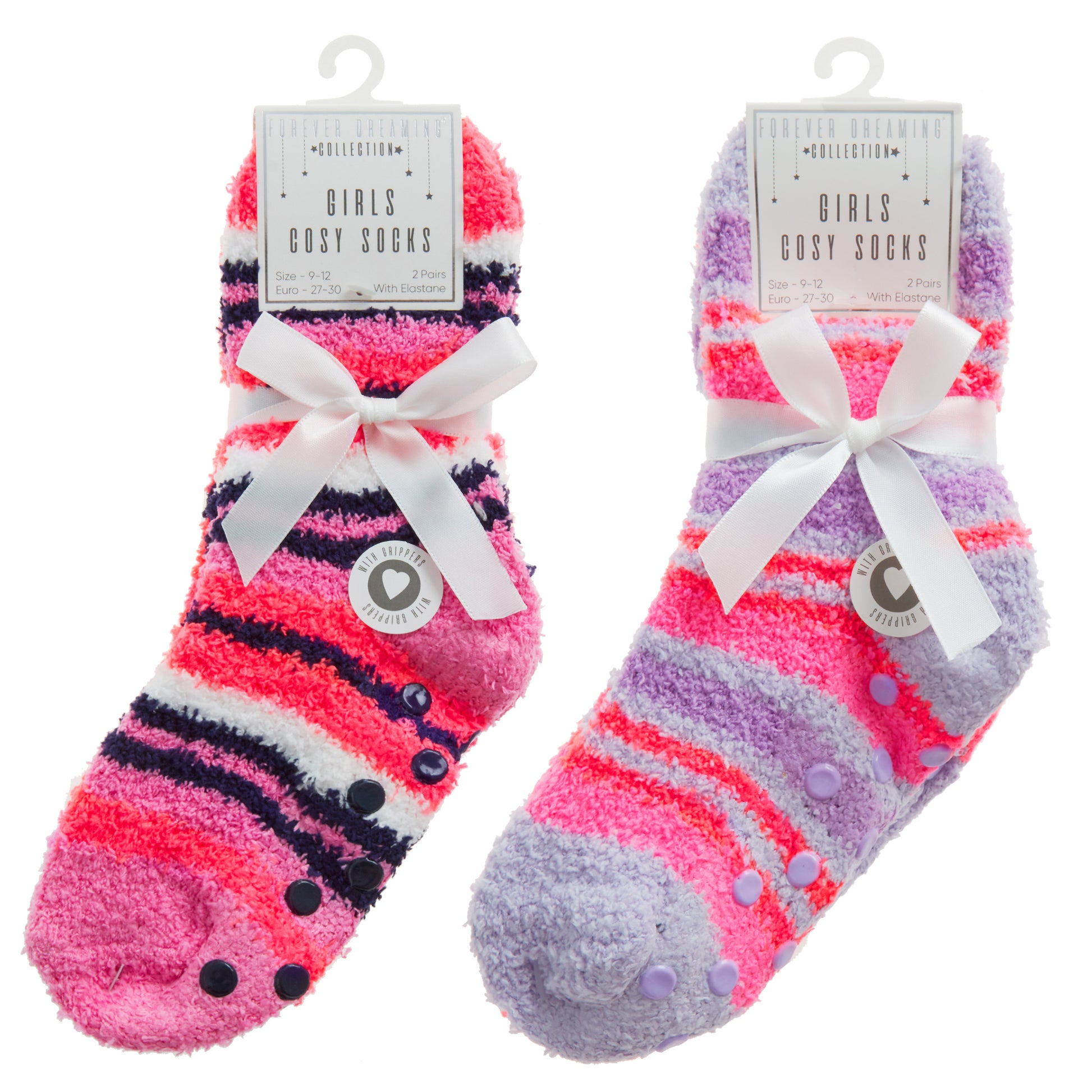 GIRLS 2 PACK COSY SOCKS WITH GRIPPERS - 43B814