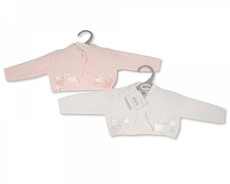 Knitted Baby Girls Bolero Cardigan with Bows - (NB-9m) (PK6) BW-10-219