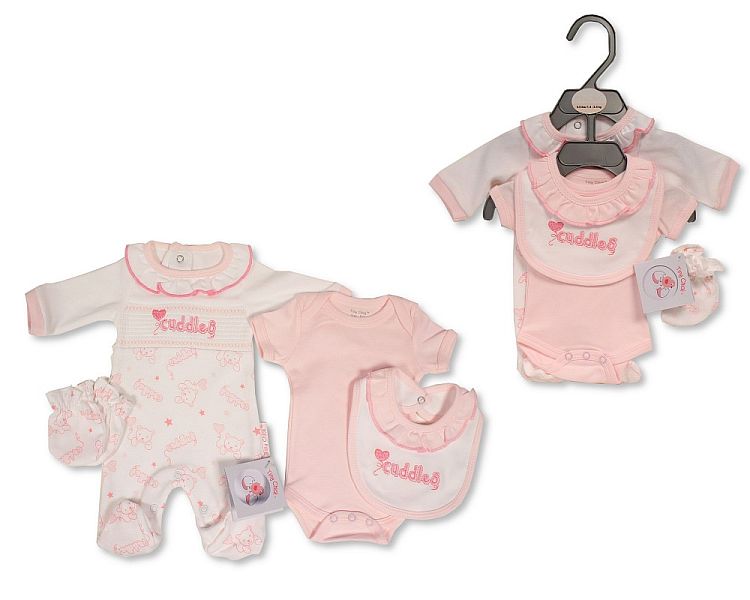 Premature Baby Girls 4 pcs Set with Smocking and Bows - Cuddles (PK6) (3-8lbs) PB-20-596P