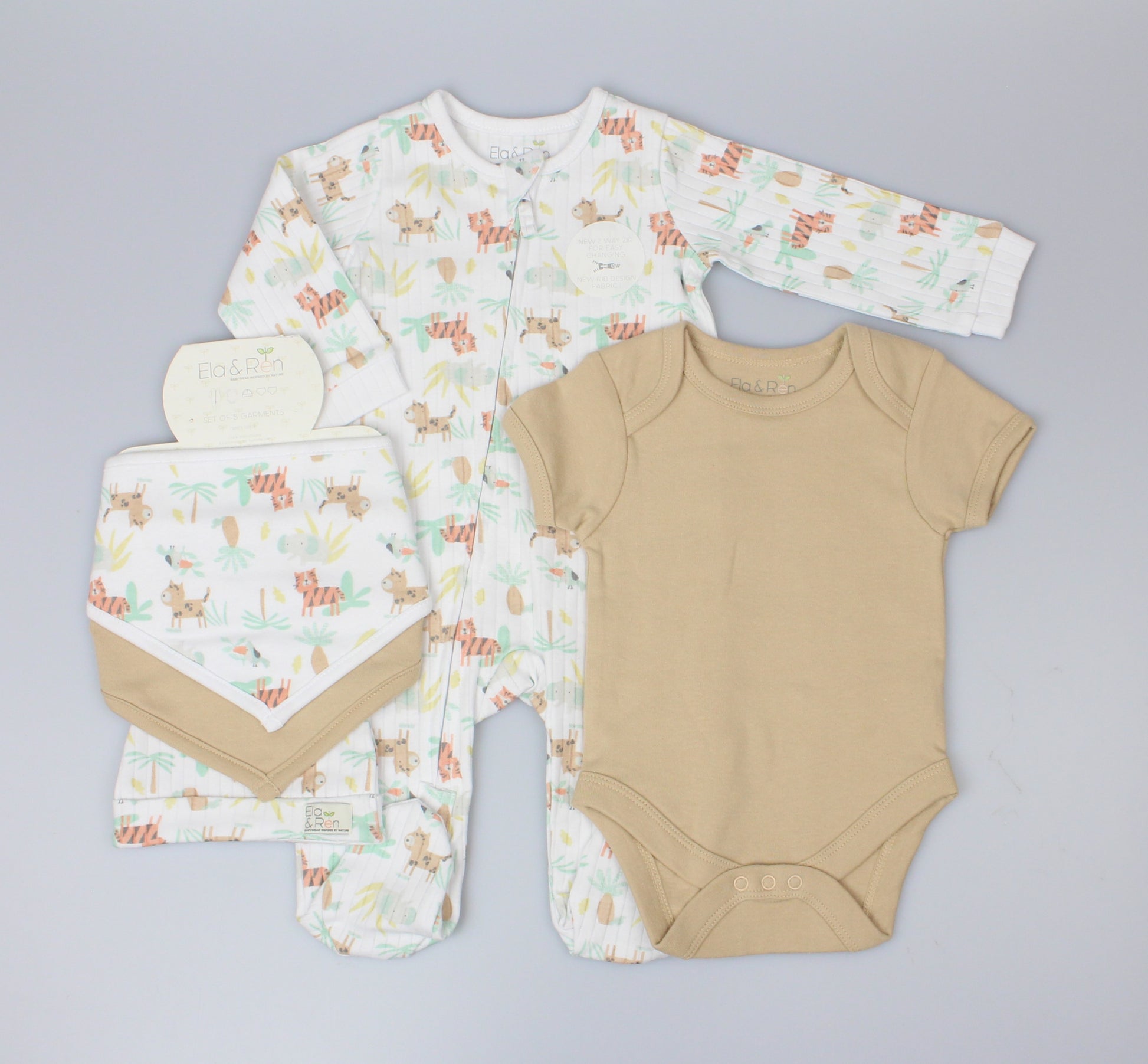 Ribbed 5pc Gift Set - Tiger/Elephant (0-9M) (PK6) E13393