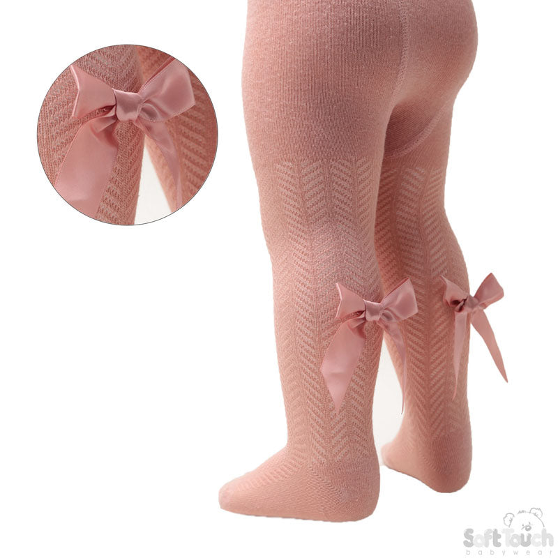 Tights W/Long Bow - Rose Gold Chevron - (NB-24 Months) T120-RO