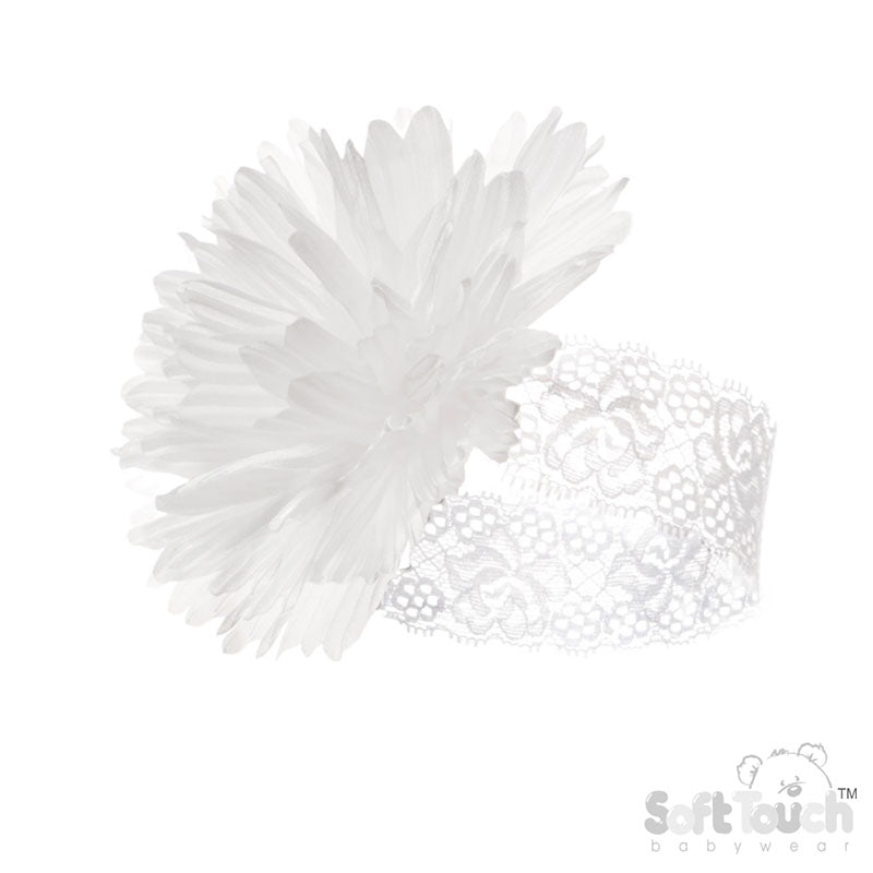 WHITE LACE HEADBAND W/LARGE FLOWER () HB100-W